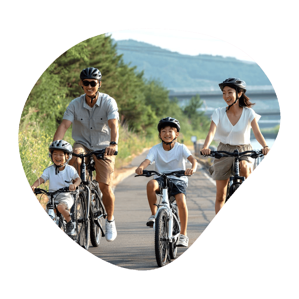 헬멧과 다양한 종류의 자전거가 준비된 전용 대여소에서 가족, 친구, 연인과 함께 평택을 천천히 둘러보며 삶의 여유와 따뜻한 배려를 느껴보세요.